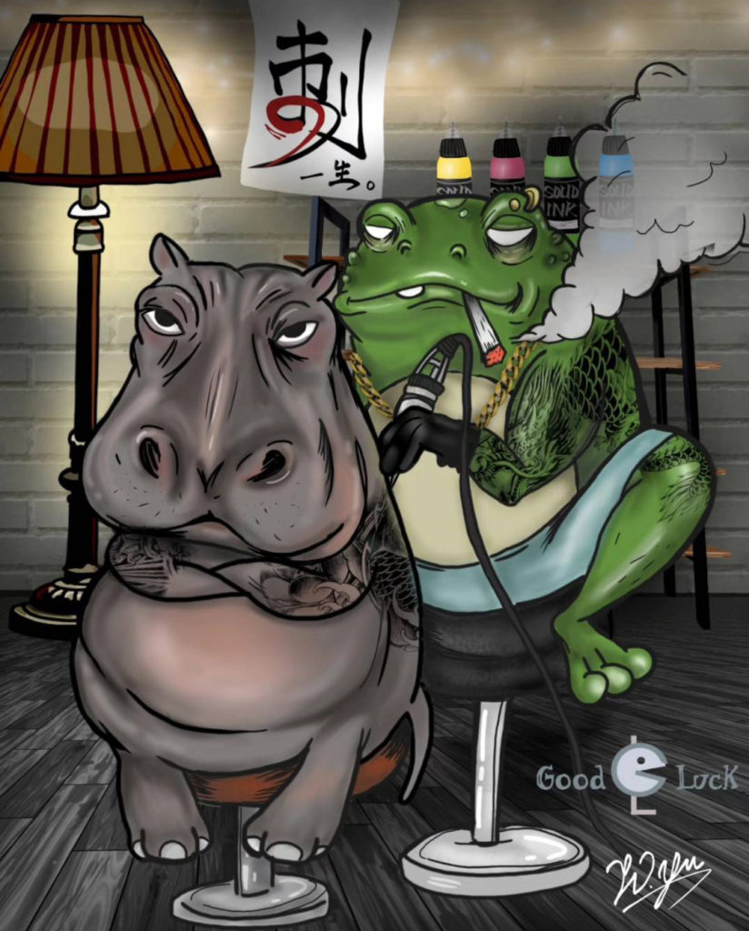 河馬象徵承受與內化,青蛙代表清醒與旁觀,兩者之間形成一種微妙的陪伴關係。